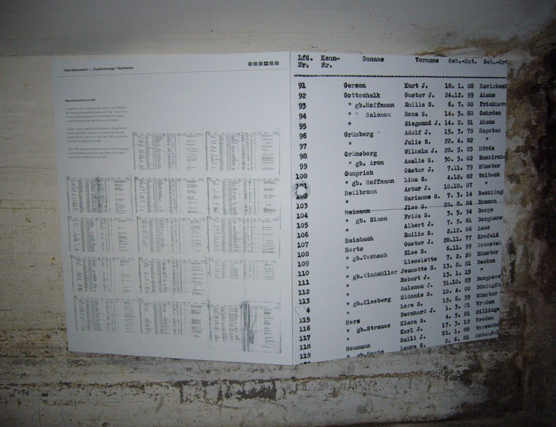 Unter dem Ausstellungstitel „Sonderzüge in den Tod“ erinnerte die Deutsche Bahn AG an das Schicksal von Deportierten, die während der NS-Zeit von der Deutschen Reichsbahn in Ghettos, Konzentrations- oder Vernichtungslager transportiert wurden. 2008 war die Ausstellung / Präsentation im Hauptbahnhof Münster zu sehen.